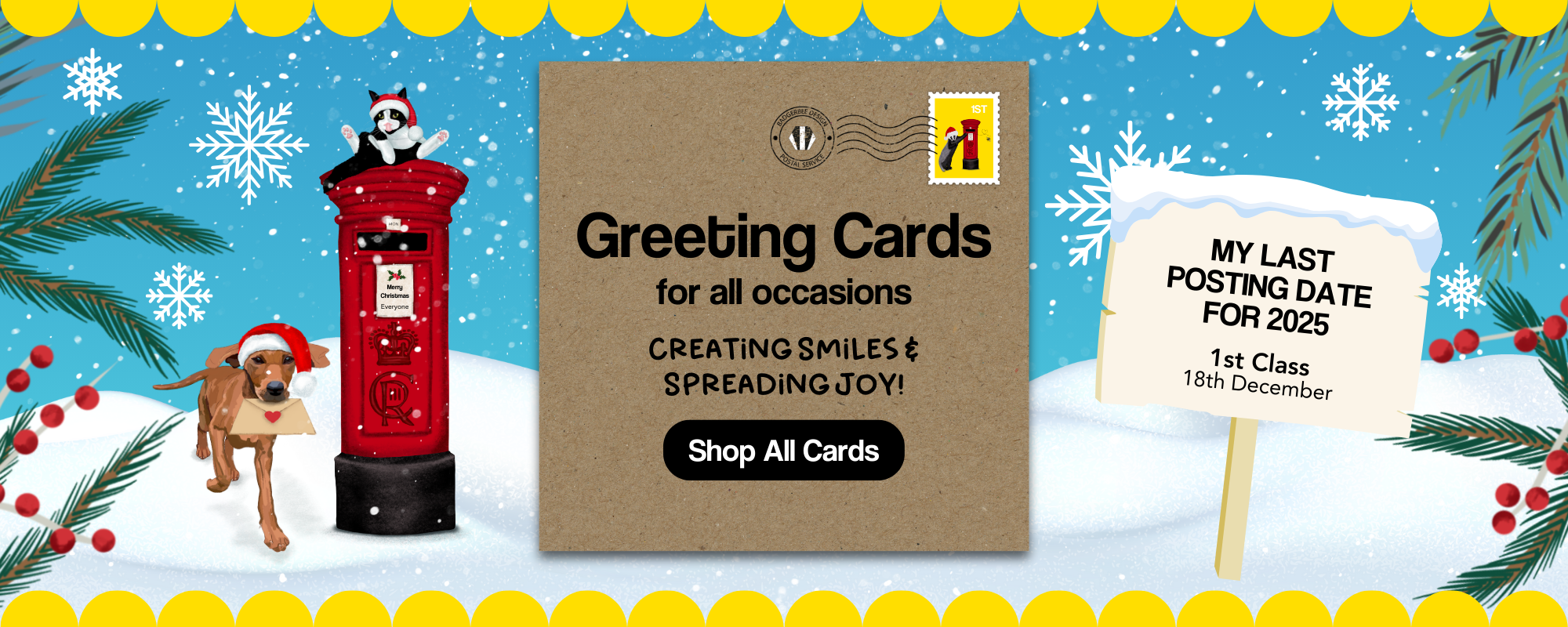 Our aim is to help you to create smiles and spread joy with our fun and colourful greeting cards for all occasions. Proudly designed and printed in the UK.